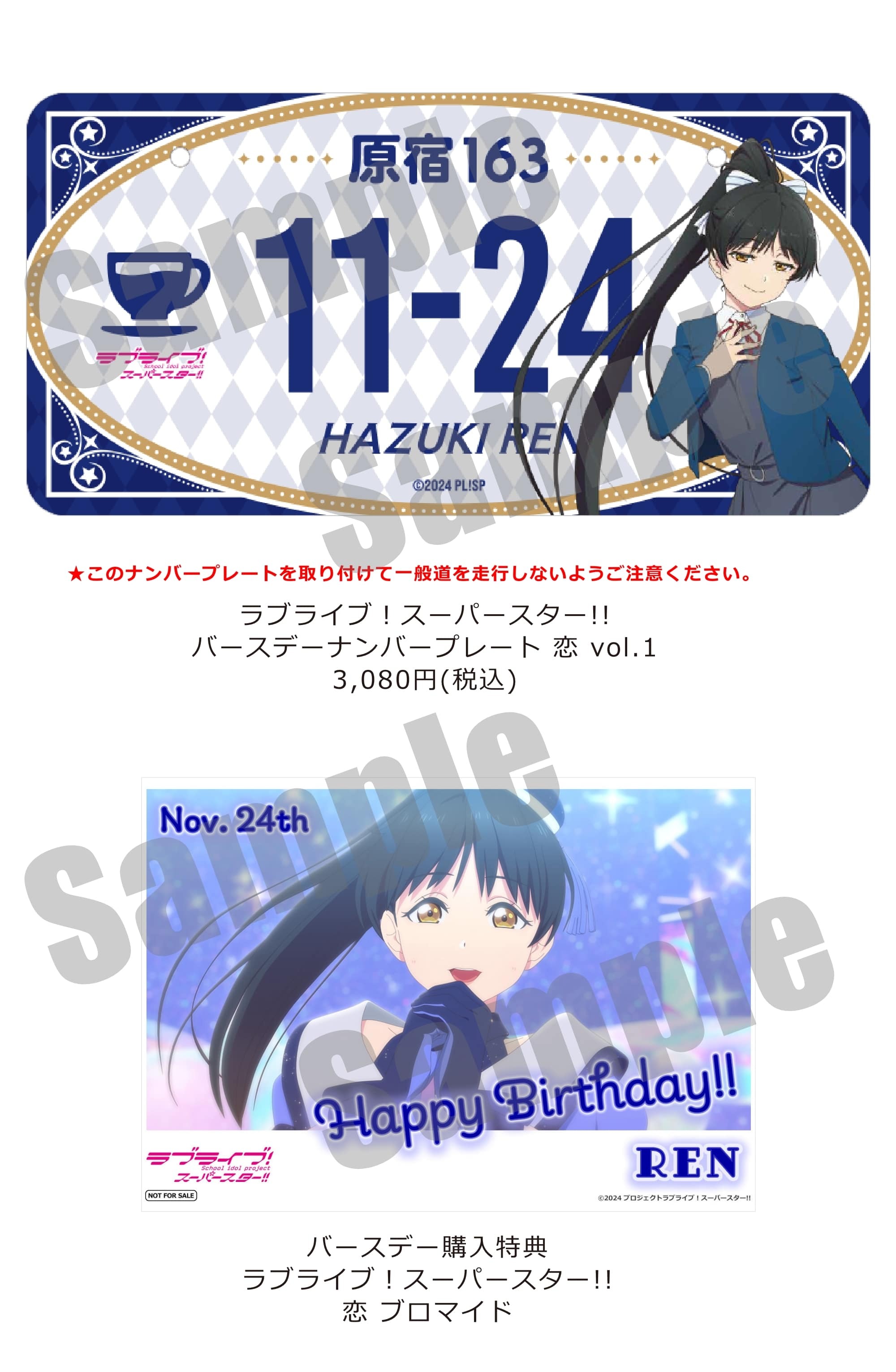 「バースデーナンバープレート 恋 vol.1」を含む予約販売期間中の1注文につき、「葉月恋」バースデーブロマイドを1枚お付けいたします!