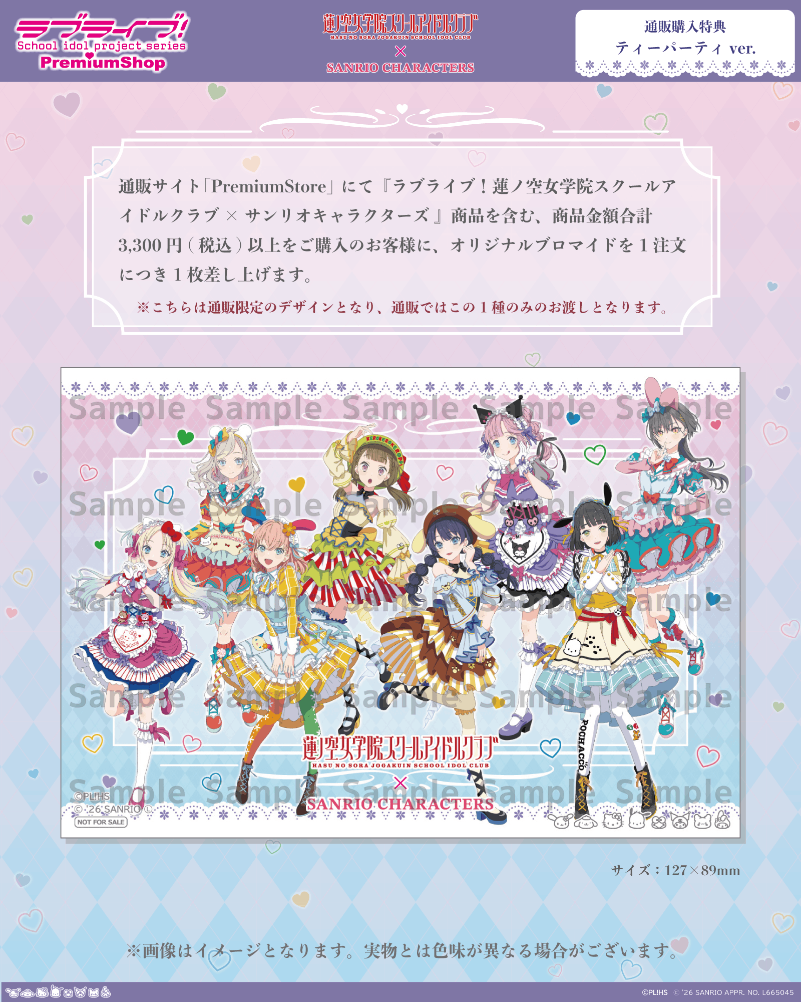 ★特典:「ラブライブ!蓮ノ空女学院スクールアイドルクラブ×サンリオキャラクターズ ティーパーティver.」商品を含む商品金額合計3,300円(税込)以上のご注文で、購入特典として特別なブロマイドを1枚お付けいたします。